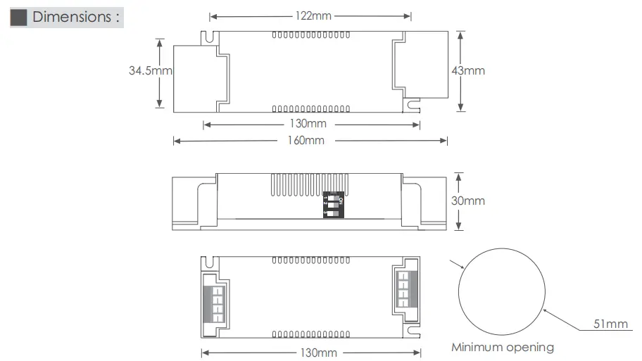 Courant constant et compatibilité étendue : fournit une alimentation stable et sans scintillement aux matrices de LED, garantissant un rendement lumineux constant et prolongeant la durée de vie des LED. La large plage de puissance de 3 à 44 W en fait une solution polyvalente pour diverses applications, de l'éclairage de corniche et des downlights aux luminaires linéaires et aux accents architecturaux.