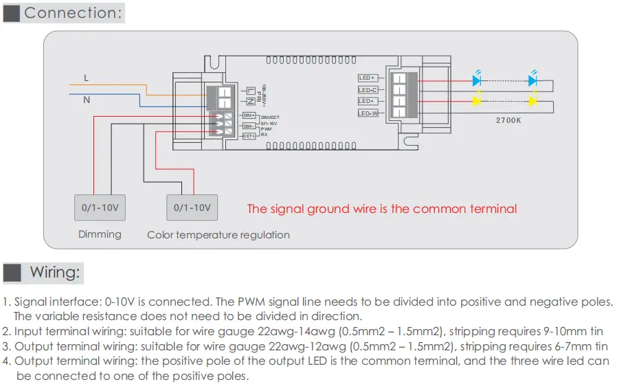 Spécifications du pilote LED à intensité variable Starwell à courant constant 0-10 V CCT :
