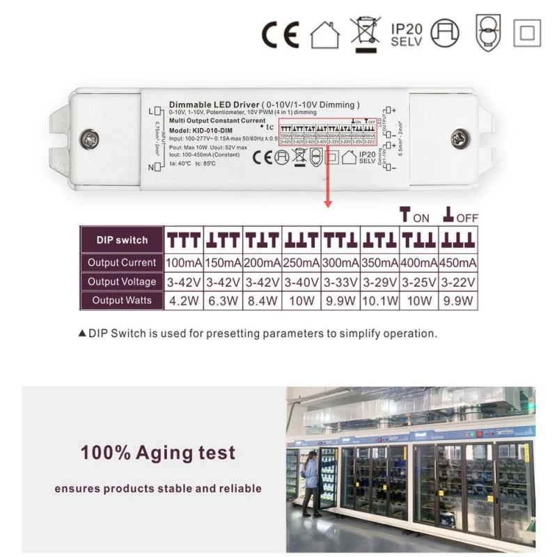 Spécifications du pilote LED à intensité variable Starwell à courant constant 0-10 V :