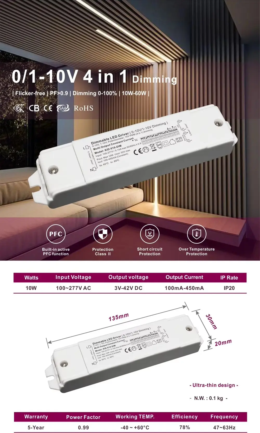 Projets de maison intelligente et de rénovation : connectez des contrôleurs intelligents (sortie PWM) à des pilotes ou luminaires LED traditionnels à intensité variable de 0 à 10 V sans problèmes de compatibilité.