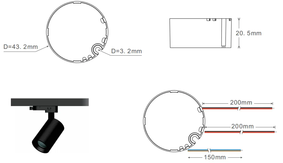 D43,2 × 20,5 mm (L × L × H) |