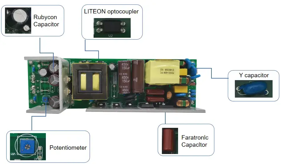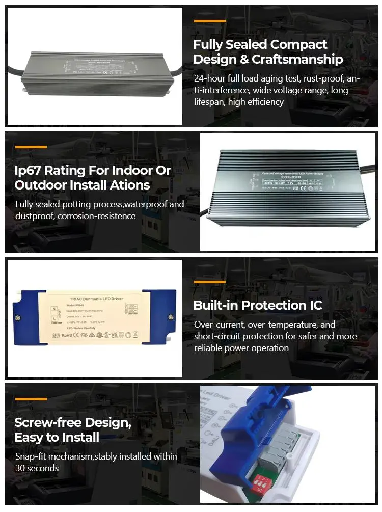 Courant constant précis · Durabilité longue durée : le pilote de LED à intensité variable triac à courant constant STARWELL adopte une puce à courant constant de haute précision. L'erreur de courant de sortie est ≤ ± 3 %, le courant de sortie est stable à 1 200 mA et la profondeur de scintillement est < 5 %, éliminant ainsi les problèmes de scintillement et d'atténuation de la lumière. Il peut prolonger la durée de vie des luminaires LED de plus de 30 %, et sa durée de vie continue peut atteindre 50 000 heures, réduisant ainsi considérablement les coûts de remplacement et de maintenance.