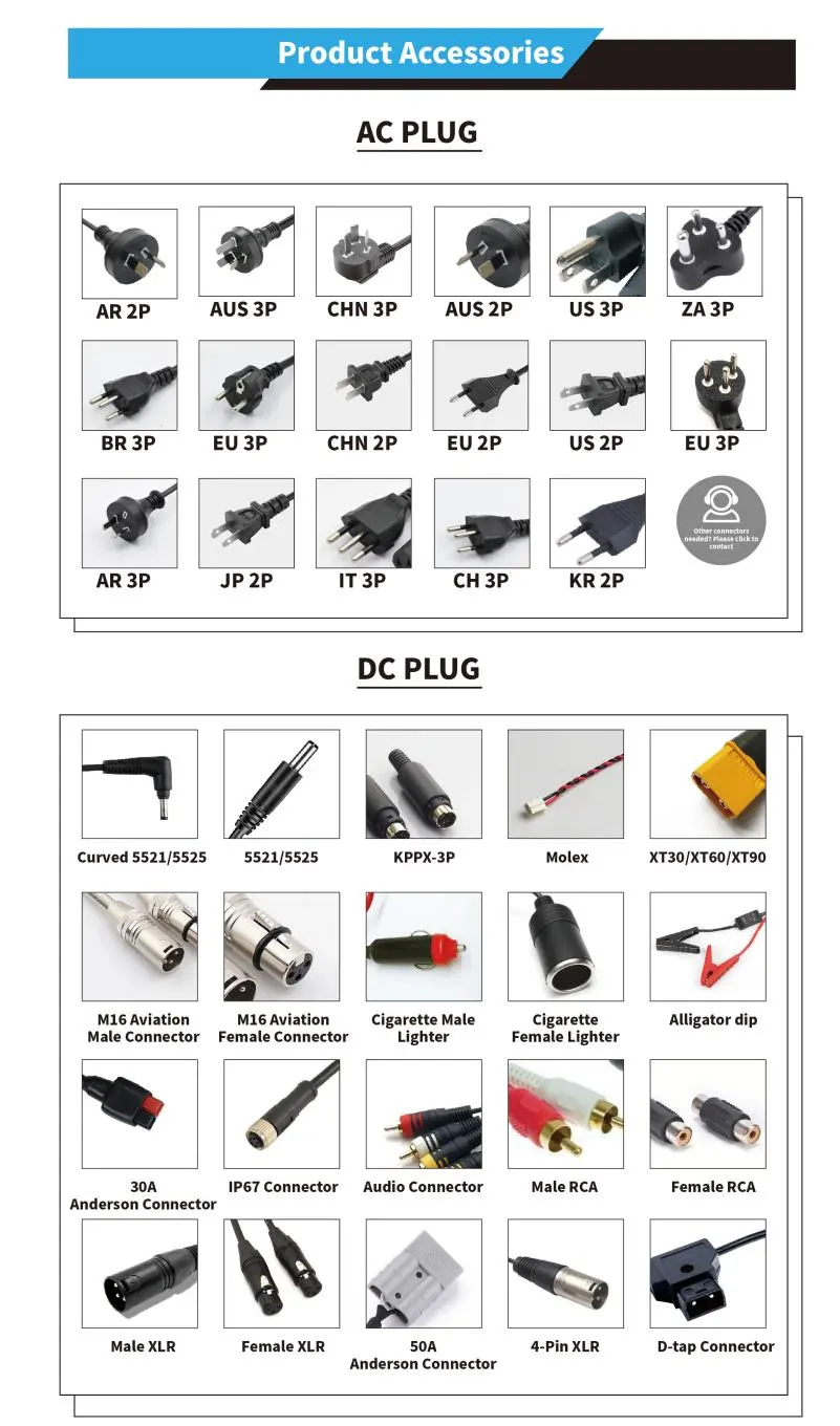 Prise aéronautique/ Prise Lotus/ Prise Canon/ Prise 3 broches |
