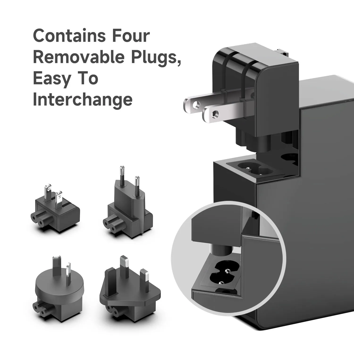 Prises multistandards : l'adaptateur secteur STARWELL est équipé de 4 types de prises encliquetables (US, EU, UK et AU), pas besoin de convertisseurs supplémentaires pour les voyages transfrontaliers.