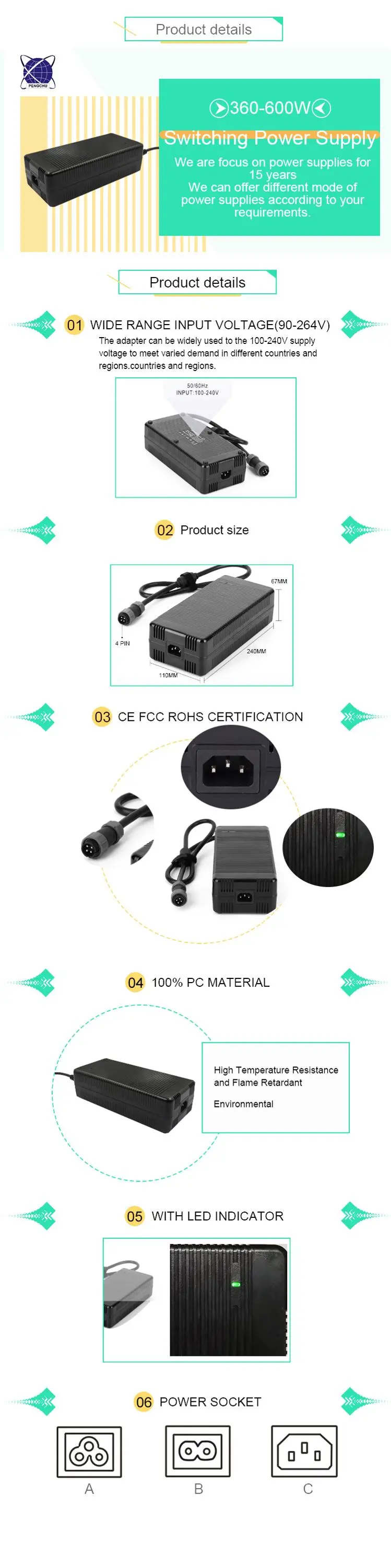 Le principal avantage de ce produit réside dans sa puissante capacité de sortie : l'adaptateur d'alimentation à découpage 12 V 50 A 600 W peut fournir une puissance continue et pure jusqu'à 600 watts, garantissant que votre système fonctionne de manière stable même à pleine charge. Peu importe où vous vous trouvez, sa conception d'alimentation à découpage à tension universelle de 600 W peut s'adapter automatiquement à la large plage de tension de 90 V à 264 V dans le monde entier, éliminant complètement les problèmes causés par une tension instable. Pour faciliter la connexion de l'utilisateur, nous avons spécialement conçu un adaptateur secteur de 600 W avec un connecteur DIN à 4 broches, doté d'une interface stable et d'un excellent contact, améliorant considérablement la commodité et la sécurité de l'installation.