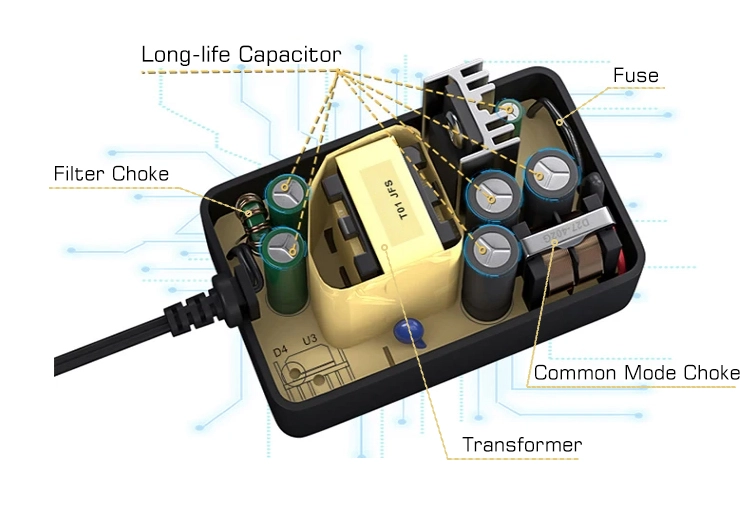 Protection de sécurité à plusieurs niveaux : la puce intelligente de l'adaptateur secteur interchangeable coupe automatiquement l'alimentation électrique pour une protection contre les courts-circuits, les surcharges et la surchauffe, vous permettant ainsi de l'utiliser avec une plus grande tranquillité d'esprit.