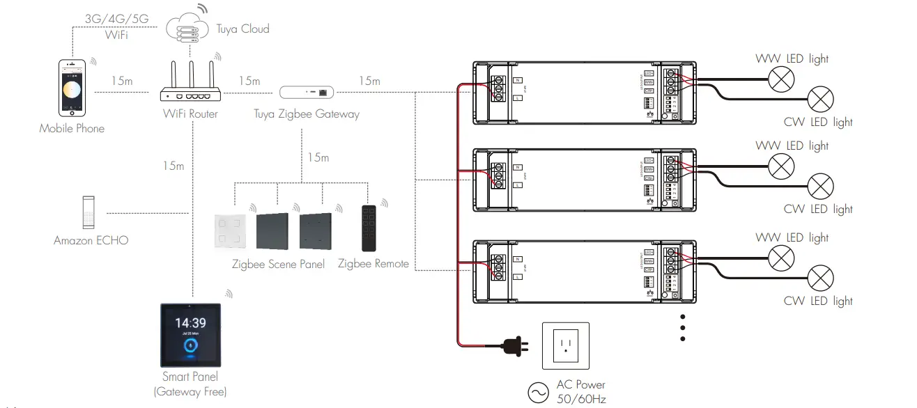 Le pilote LED TUYA Zigbee prend entièrement en charge le protocole TUYA Zigbee pour une connexion sans fil stable, permettant d'obtenir un CCT fluide et sans scintillement et une gradation de la luminosité. Il prend en charge le contrôle APP, la commande vocale, le contrôle de groupe et le mode scène, apportant une grande commodité aux systèmes d'éclairage intelligents.