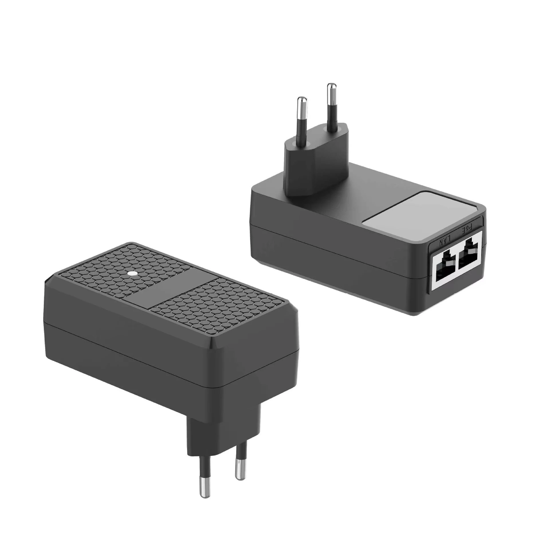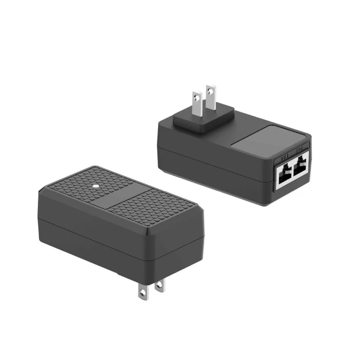 L'injecteur PoE à prise interchangeable à montage mural 12 W est un dispositif d'alimentation réseau intégré qui combine un adaptateur secteur et un injecteur PoE passif en une seule unité compacte. Contrairement aux configurations PoE traditionnelles qui nécessitent à la fois un adaptateur secteur et un module d'injection, cette conception simplifie l'installation en permettant à l'appareil d'être directement monté sur une prise murale.