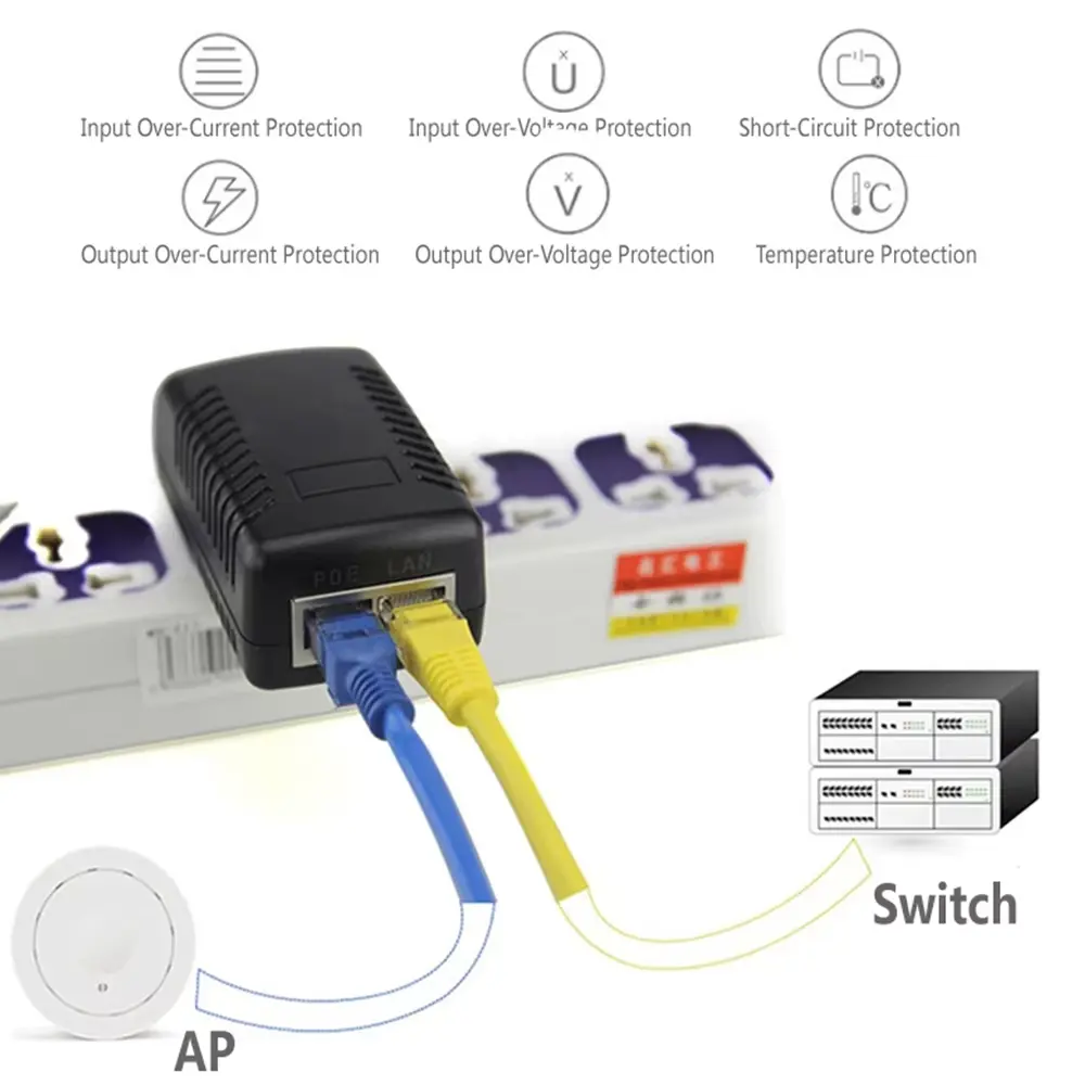 Idéal pour alimenter les points d'accès sans fil (AP) dans les bureaux, les hôtels et les maisons où une installation murale permet d'économiser de l'espace.