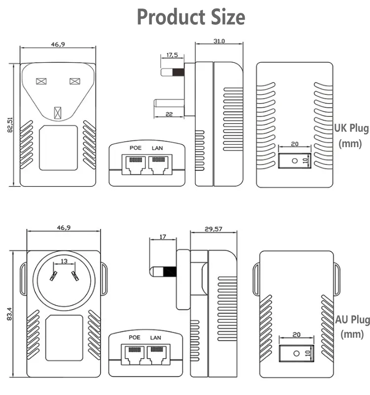 La structure compacte de la prise murale permet une utilisation directe avec des prises de courant standard, ne nécessitant aucun support ni câblage supplémentaire. Cet injecteur POE 24 V 1 A 48 V 0,5 A permet d'économiser de l'espace et simplifie le câblage, ce qui en fait un choix idéal pour la maison, le bureau, le magasin et les petits systèmes de surveillance.