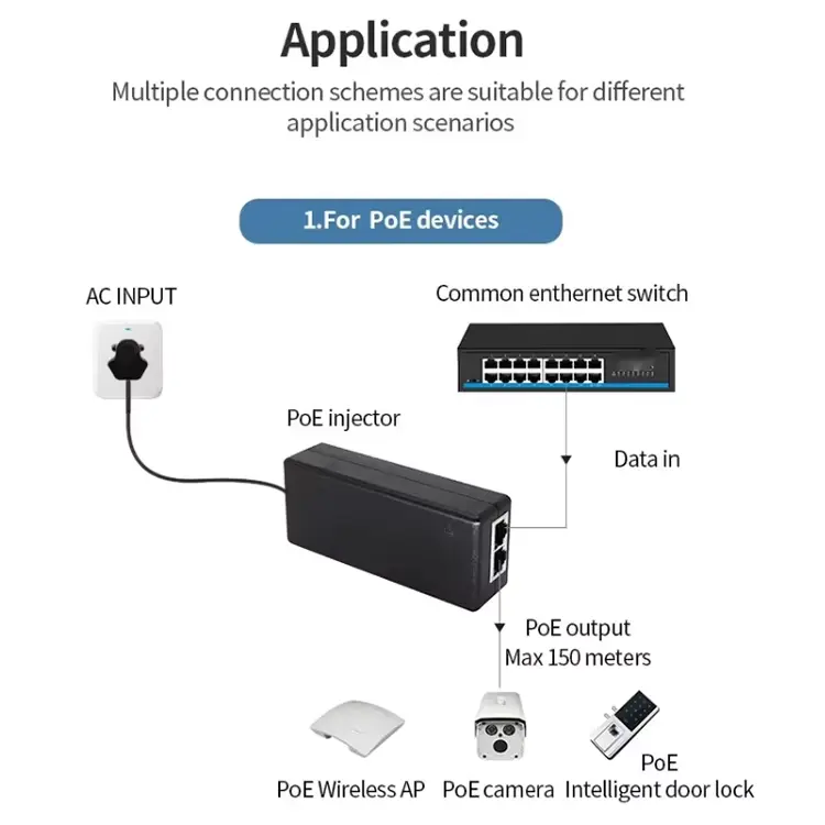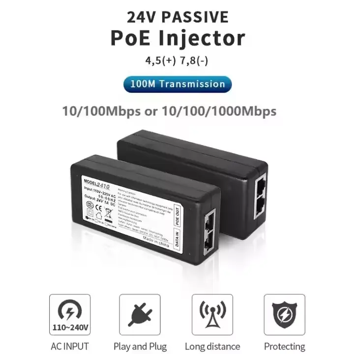 Cet injecteur PoE passif utilise une transmission directe de puissance sans protocole de liaison, réduisant ainsi la complexité du système et améliorant la compatibilité avec des équipements réseau spécifiques.