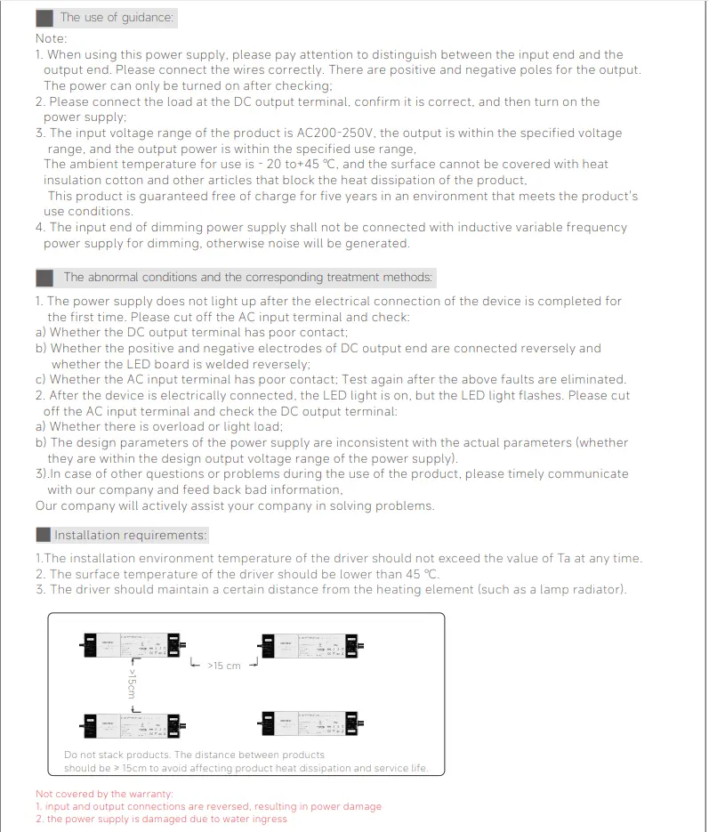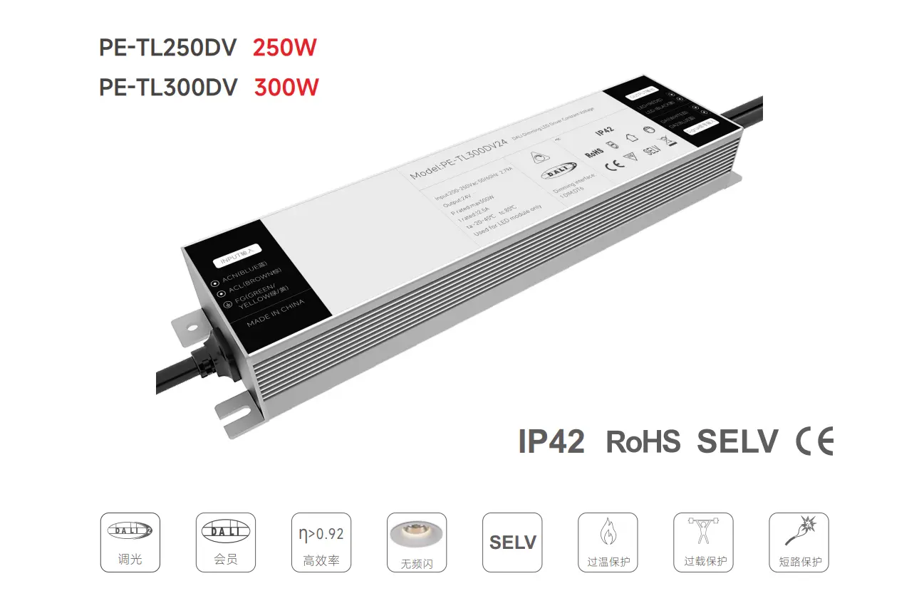 Avec un boîtier compact IP20, il est facile à installer dans les plafonds, les armoires de commande ou les luminaires. Sa conception à tension constante garantit des performances constantes pour les bandes, panneaux et modules LED connectés en parallèle, ce qui le rend idéal pour les espaces de vente au détail, les bureaux, les hôtels et les projets d'éclairage architectural extérieur.