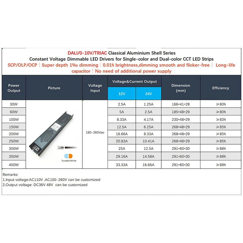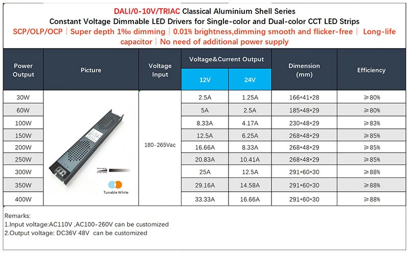 Notre driver de LED dimmable DALI CCT à tension constante offre une efficacité de conversion à pleine charge de 85 % et un PF ≥0,95, avec une entrée universelle 100-240VAC et un THD ≤15 % à pleine charge ainsi qu'une faible consommation d'énergie en veille. Il réduit le gaspillage d'énergie de plus de 15 % par rapport aux pilotes standards, permettant un déploiement mondial direct.