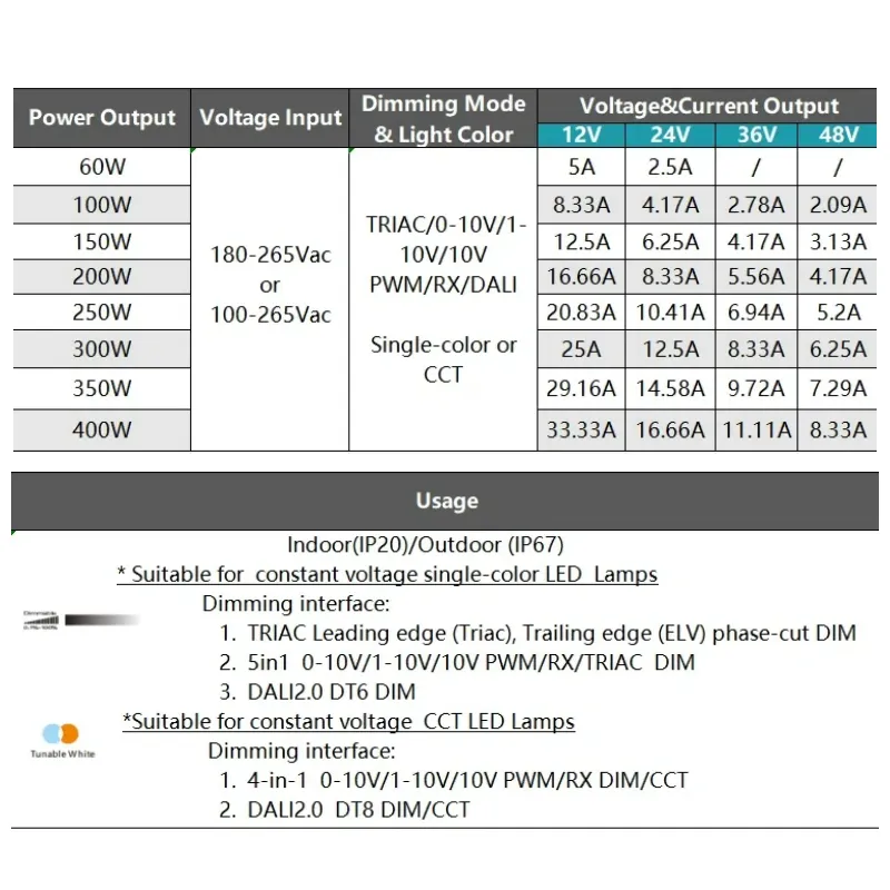 Driver LED à intensité variable DALI CCT à tension constante de 60 W