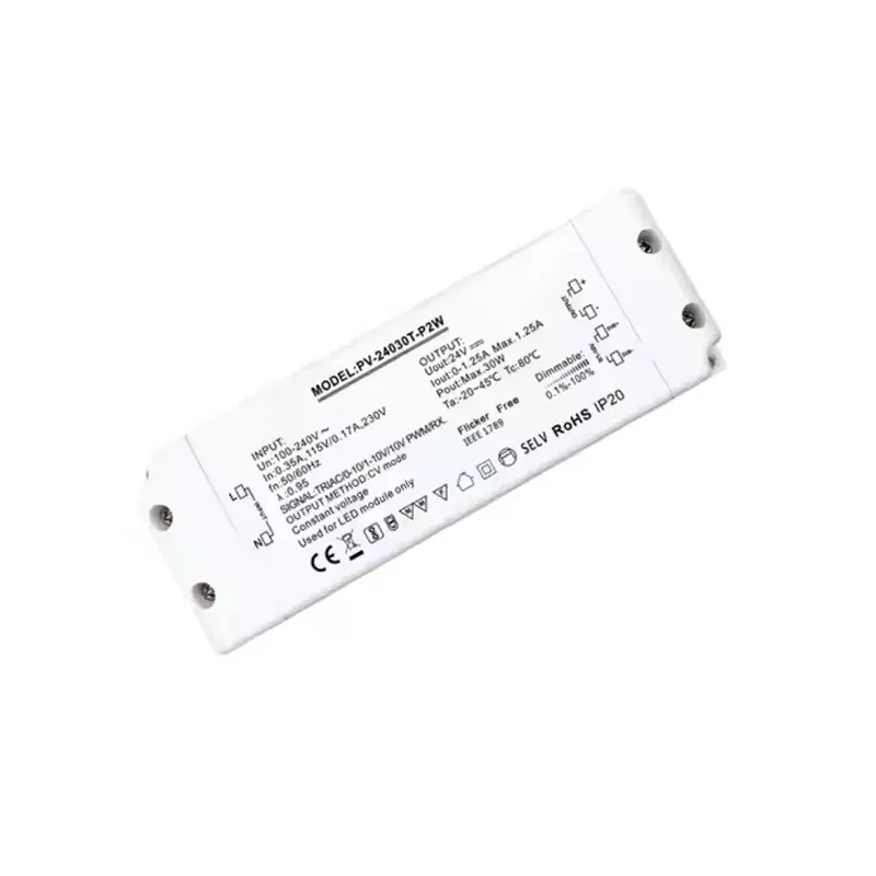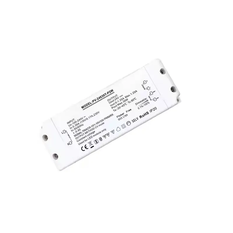 Un driver LED à gradation triac à tension constante de 30 W de haute qualité est proposé par le fabricant chinois Starwell. Il s'agit d'un driver LED à gradation triac à tension constante de 30 W hautes performances et polyvalent, spécialement conçu pour les systèmes d'éclairage LED qui nécessitent un contrôle précis de la lumière. Il est compatible à la fois avec les protocoles de gradation traditionnels à coupure de phase (Triac) de pointe et avec les protocoles de gradation analogiques avancés 0-10 V, fonctionnant comme un pilote de LED Triac 30 W à intensité variable 0-10 V, offrant aux utilisateurs une flexibilité d'installation et une adaptabilité de scène.