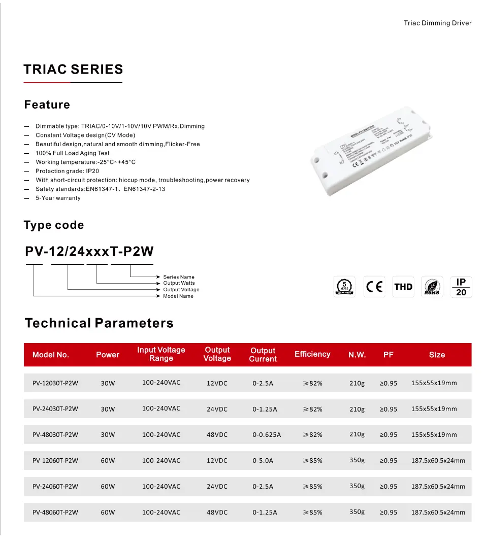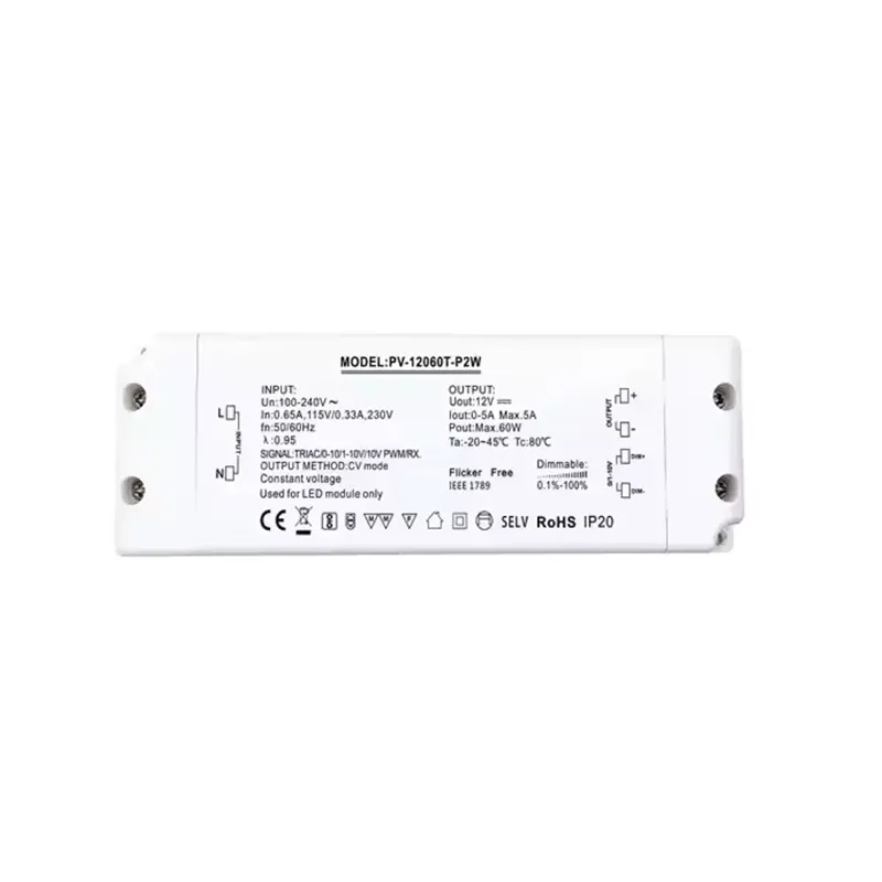 Pilote de LED à intensité variable Triac ultra mince à tension constante de 60 W