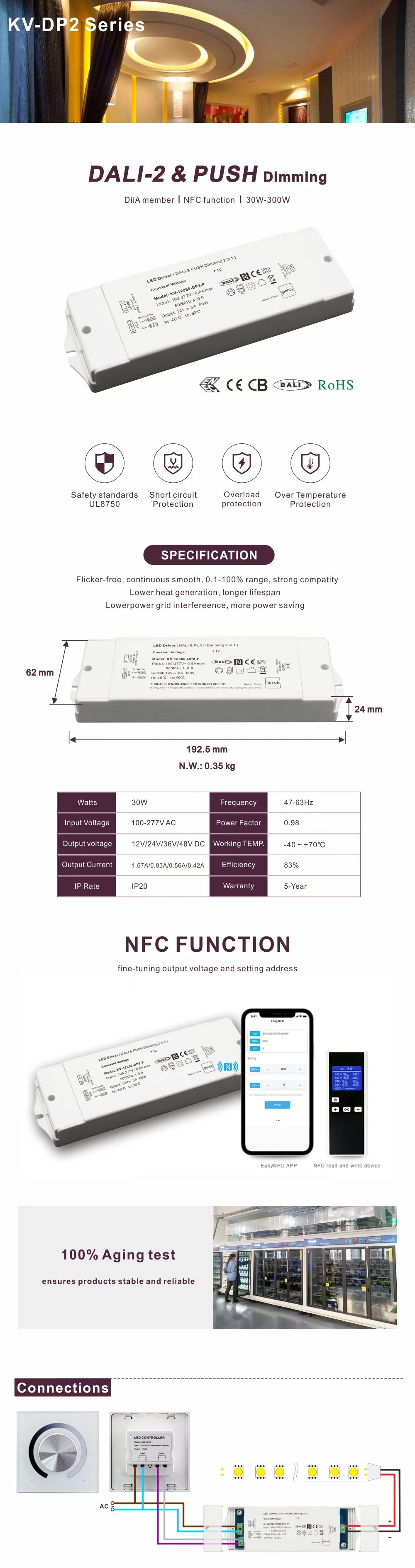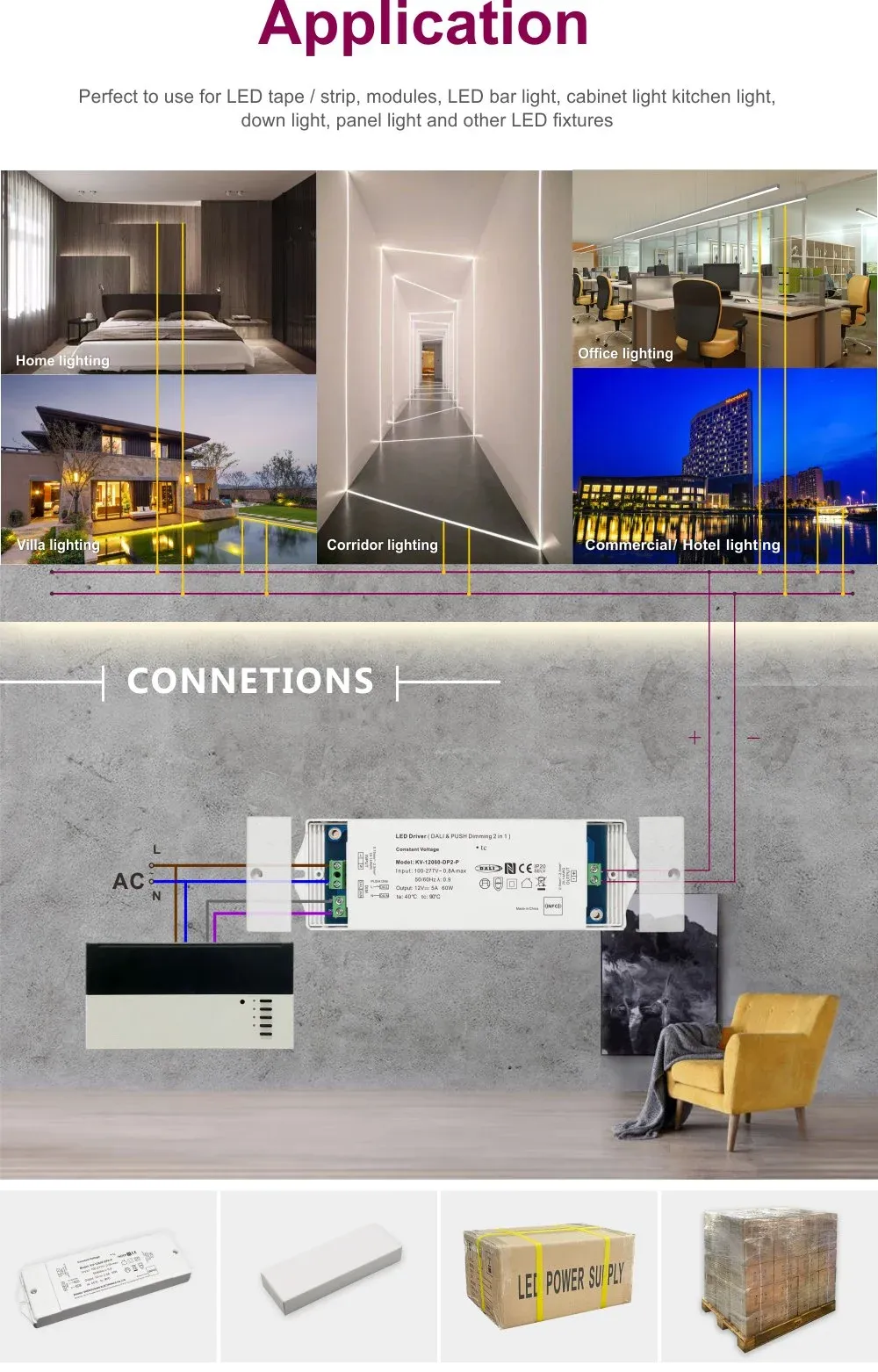 En plus de sa puissante fonctionnalité DALI, ce driver offre une expérience de gradation exceptionnelle. Il obtient un effet NFC Dimming Smooth No Flicker soyeux, éliminant complètement le scintillement et la gigue visibles même à de faibles niveaux de luminosité, protégeant efficacement la vue et créant un environnement d'éclairage confortable et sain. Sa large plage de tension d'entrée CA (entrée 100-265 V) lui permet de s'adapter aux fluctuations de tension des réseaux électriques du monde entier, garantissant un fonctionnement stable dans différentes régions.