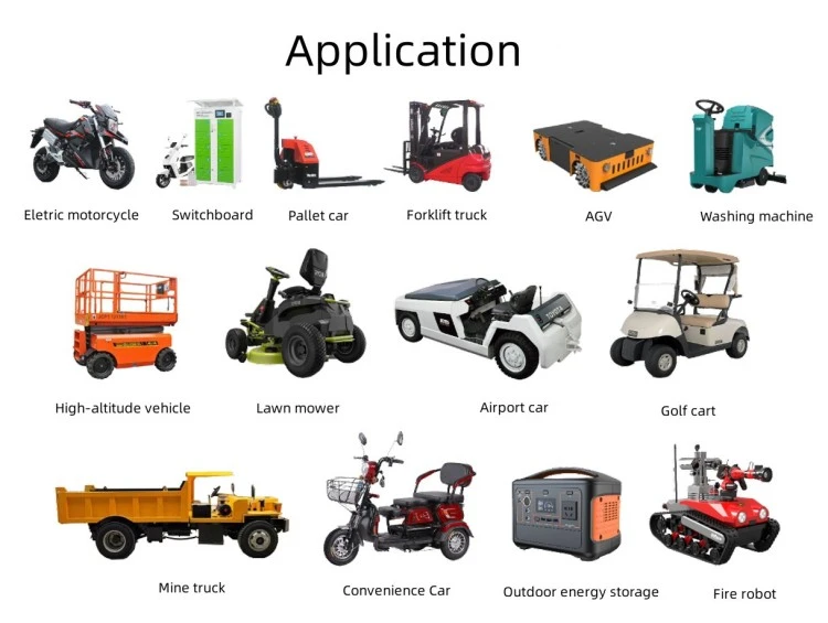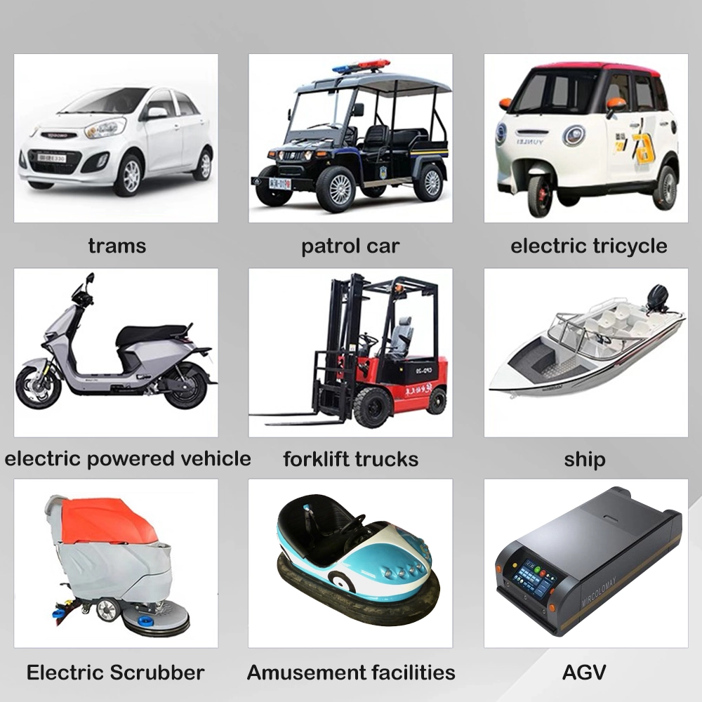 Applications du produit Autos tamponneuses électriques et manèges Véhicules touristiques et voiturettes de golf Véhicules de patrouille et chariots de sécurité Chariots élévateurs et matériel de manutention Autolaveuses et machines de nettoyage Véhicules à guidage automatique (AGV) pour entrepôts Navires, bateaux et navires utilitaires électriques