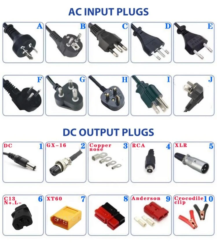 Protection contre le grillage : la température du chargeur dépasse la limite. La charge réduira la charge électrique. La température de l'environnement dépasse 65 ℃, le chargeur arrêtera de charger et passera en mode veille jusqu'à ce que la température de l'environnement baisse. Protection pour la connexion inversée des batteries : le circuit à l'intérieur du chargeur s'éteint avec les batteries lorsque les batteries sont connectées à l'envers et n'endommagera pas le chargeur. Protection sans charge : il n'y a aucune sortie lorsque les batteries ne sont pas connectées. Protection contre les courts-circuits : le circuit à l'intérieur du chargeur s'arrête avec les batteries lorsque la sortie est en court-circuit. Le chargeur ne commencera à charger qu'après le dépannage et redémarrera le chargeur. Arrêt automatique lors d'une charge complète : la charge s'éteint automatiquement une fois la batterie complètement chargée selon le jugement du chargeur. |