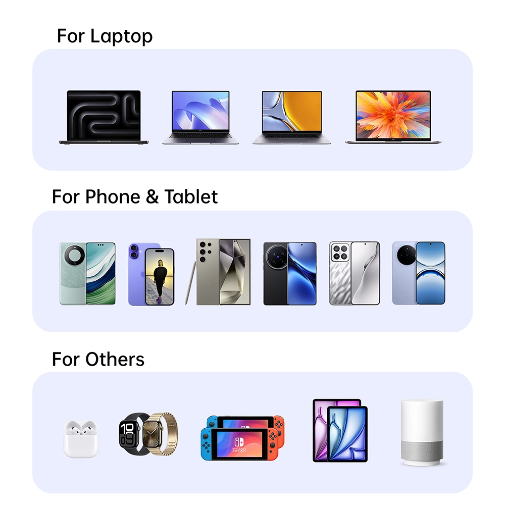 Compatibilité universelle : notre chargeur PD est équipé de la technologie Power Delivery (PD), ce qui le rend compatible avec une large gamme d'appareils, notamment les smartphones, les tablettes et même certains ordinateurs portables. C'est la solution de recharge ultime pour tous vos gadgets.