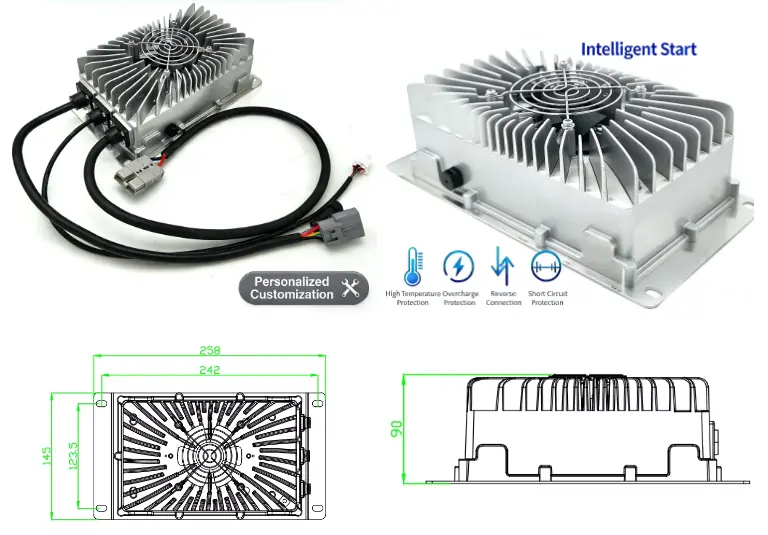 Le chargeur 480 W OBC 24 V 15 A est parfait pour les voitures électriques, les motos, les véhicules touristiques, les chariots élévateurs, les navires et les machines industrielles. Sa conception durable et sa large prise en charge de la batterie en font un choix privilégié pour les fabricants, les fournisseurs et les usines cherchant à améliorer les systèmes de recharge des véhicules électriques avec des performances fiables.