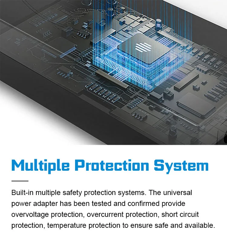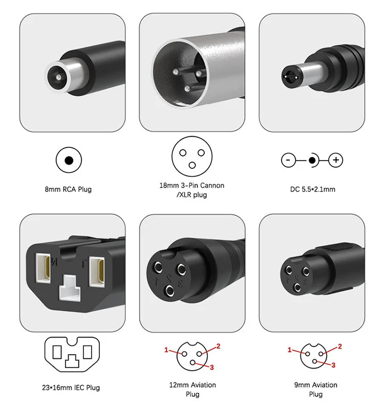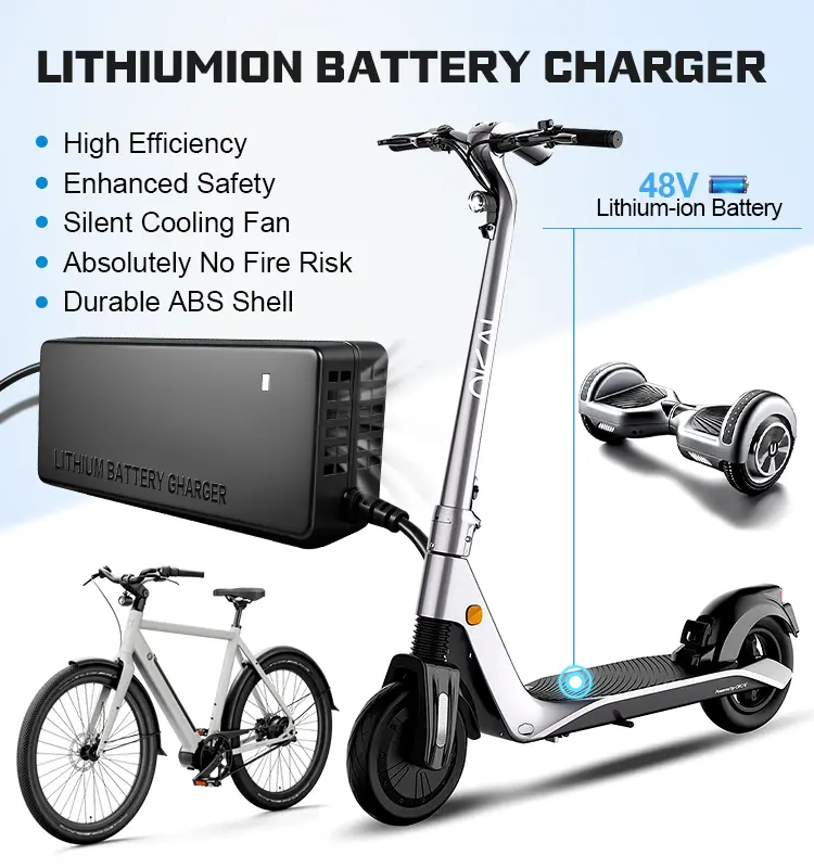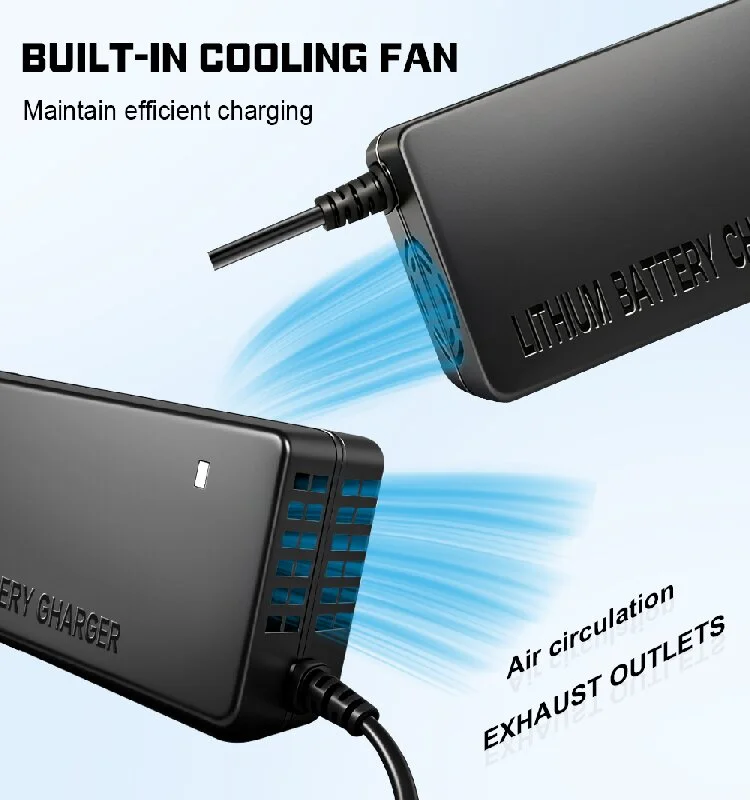 Equipé d'une puce de gestion par micro-ordinateur intégrée, le chargeur surveille la tension de la batterie et les fluctuations de température en temps réel. Il fonctionne conjointement avec le système de gestion de batterie (BMS) pour garantir que le processus de charge reste sûr et contrôlable, répondant ainsi pleinement aux exigences rigoureuses des batteries lithium-ion.