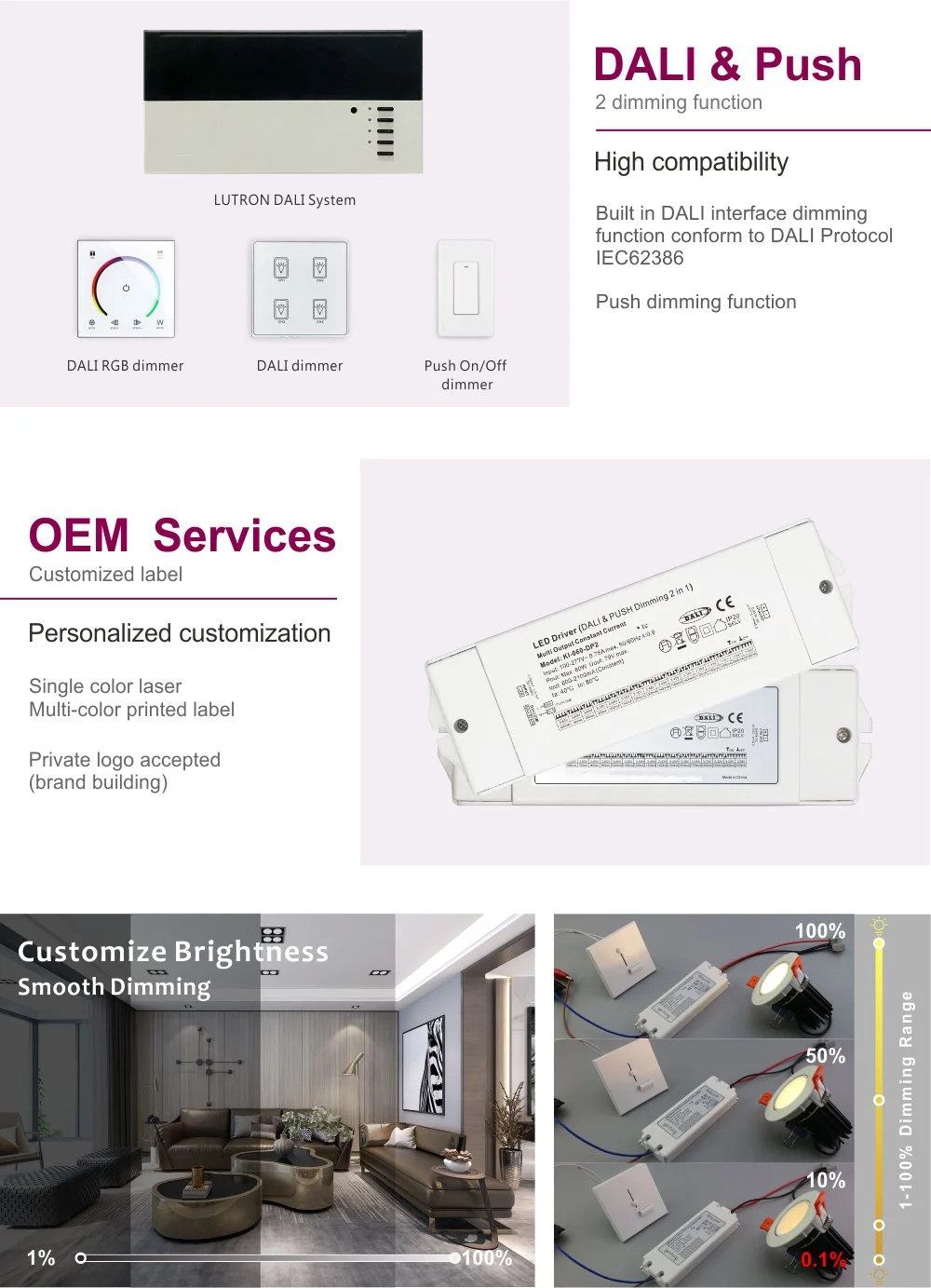 · Forte compatibilité, gradation sans scintillement