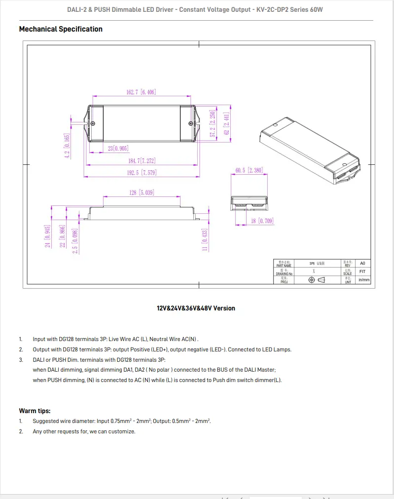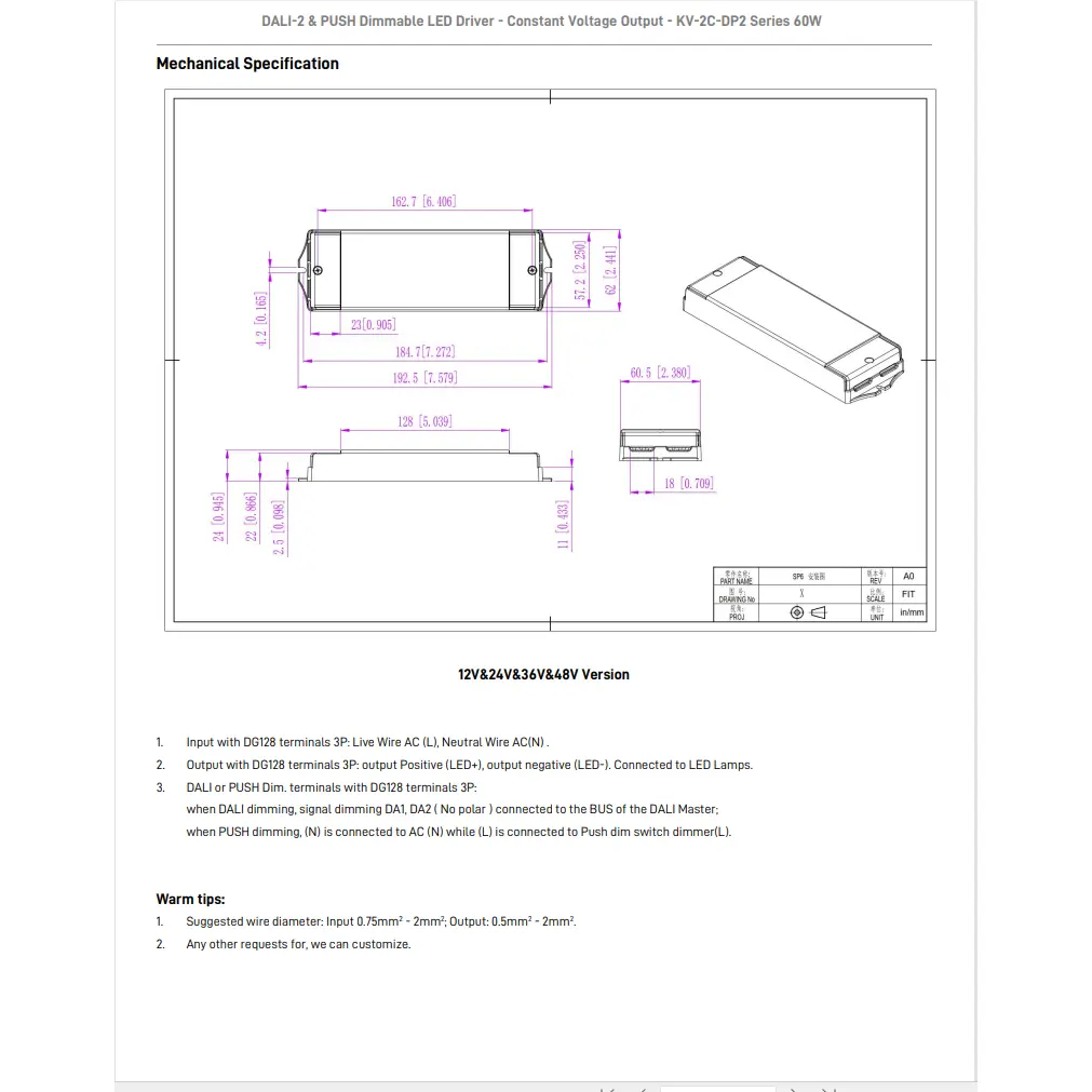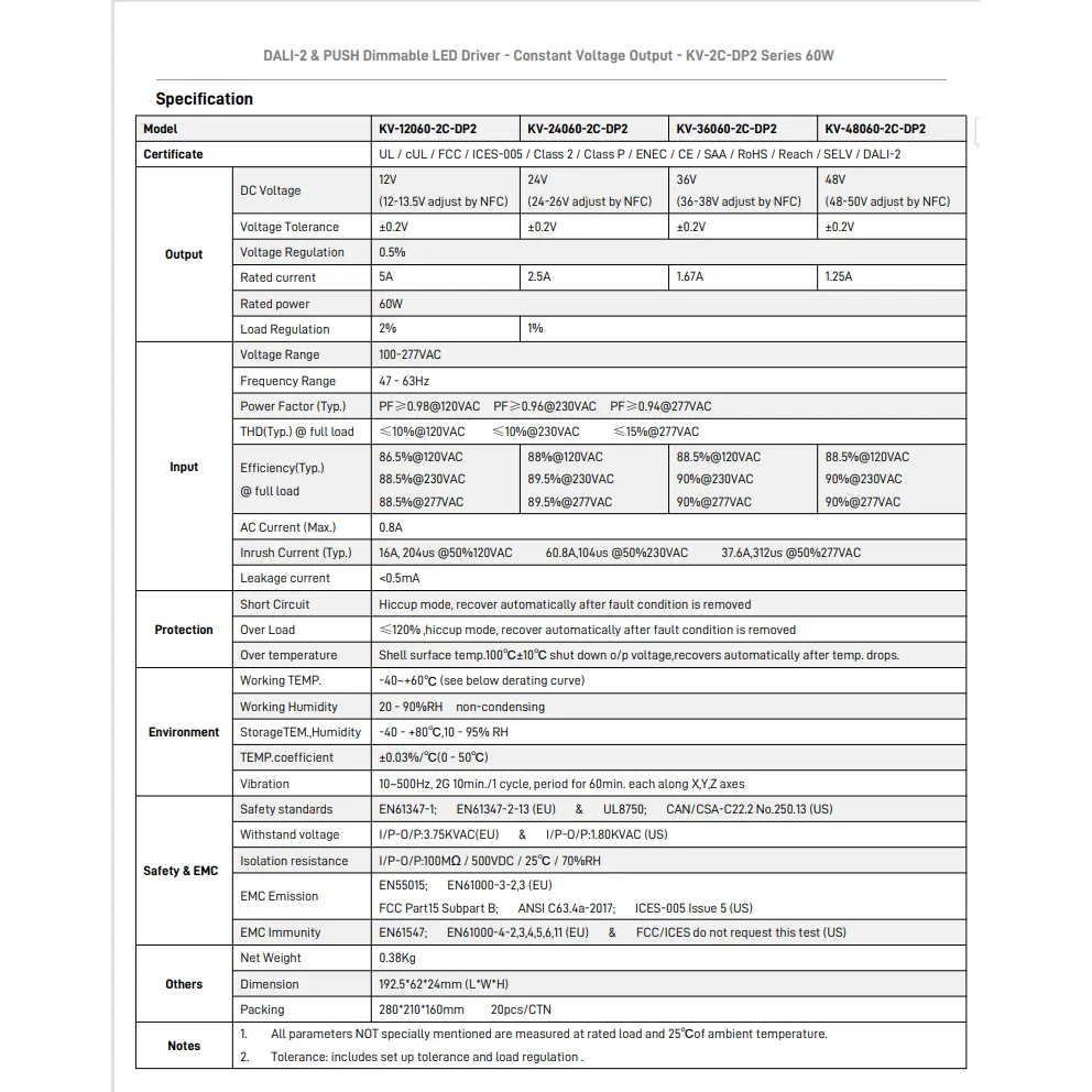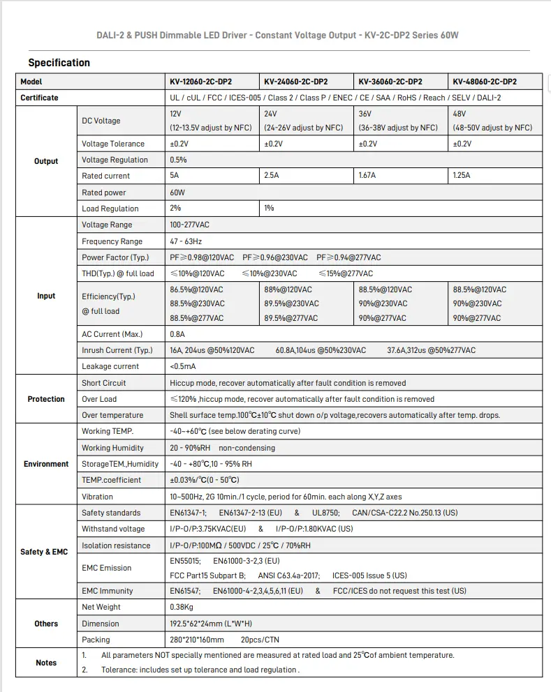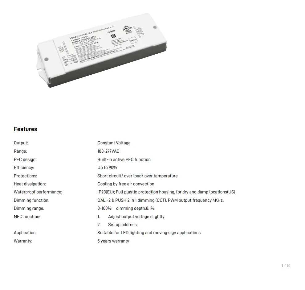 Fonction de gradation : DALI-2 & PUSH 2 en 1 (CCT). Fréquence de sortie PWM 4KHz.