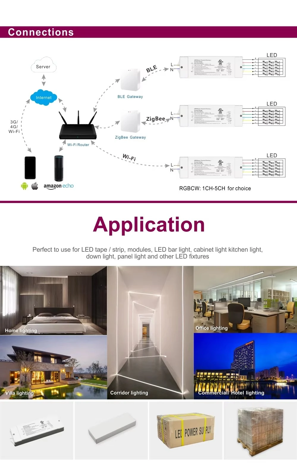 2. Le pilote à intensité variable Zigbee pourrait être contrôlé par un haut-parleur intelligent, comme Google home ou Amazon Echo