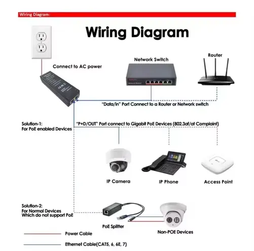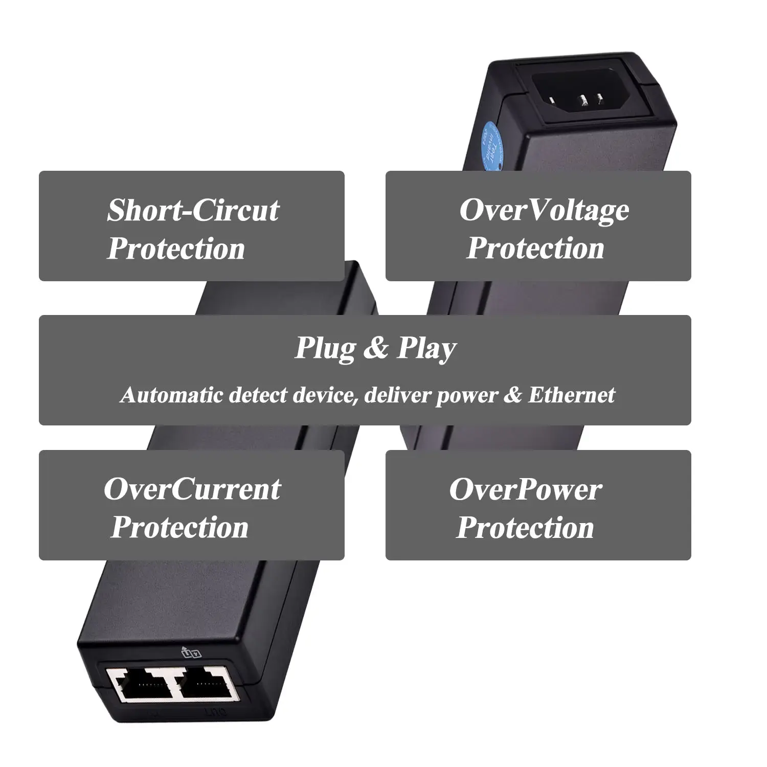 Sortie haute puissance : prend en charge jusqu'à 30 W de sortie, alimentant et connectant efficacement des périphériques réseau tels que des caméras IP, des points d'accès sans fil et des téléphones VoIP.