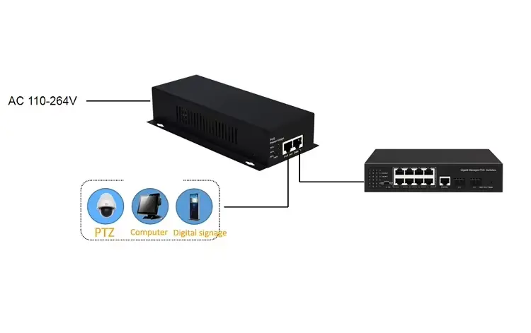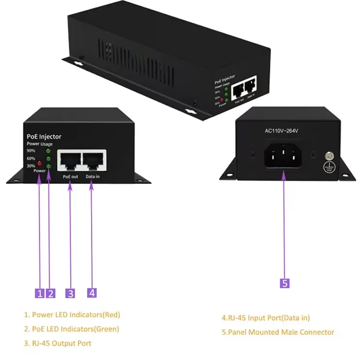En tant que fabricant professionnel d'alimentations électriques en Chine, Starwell a introduit un injecteur PoE Gigabit IEEE802.3bt à boîtier métallique de 90 W qui est entièrement conforme à la norme IEEE 802.3bt. Il prend en charge une sortie de 52 V, fournit une puissance maximale de 90 W par port et est rétrocompatible avec les normes 802.3af/at.
