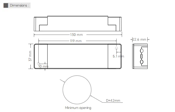 130 × 37 × 22,6 mm (L × L × H) |
