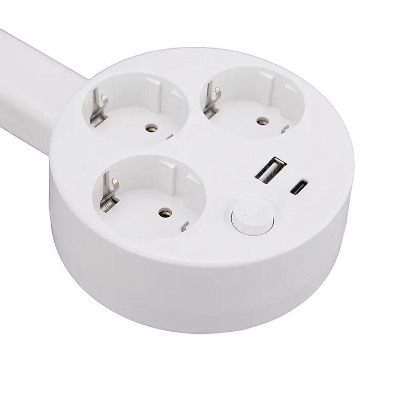 Cette rallonge de prise murale européenne compacte mais entièrement fonctionnelle comprend trois prises européennes standard ainsi qu'un port USB-C et un port USB-A, ce qui la rend parfaite pour divers paramètres. C'est une excellente station de recharge pour votre bureau, dortoir, buanderie ou toute zone avec des prises limitées.