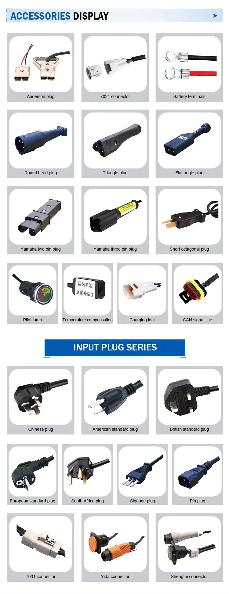 Large compatibilité et modèles flexibles : Le chargeur de batterie de véhicule électrique embarqué IP67 800 W prend en charge plusieurs compositions chimiques de batterie, notamment le plomb-acide et le lithium, avec différents modèles pour s'adapter aux exigences de tension et de courant de votre système :