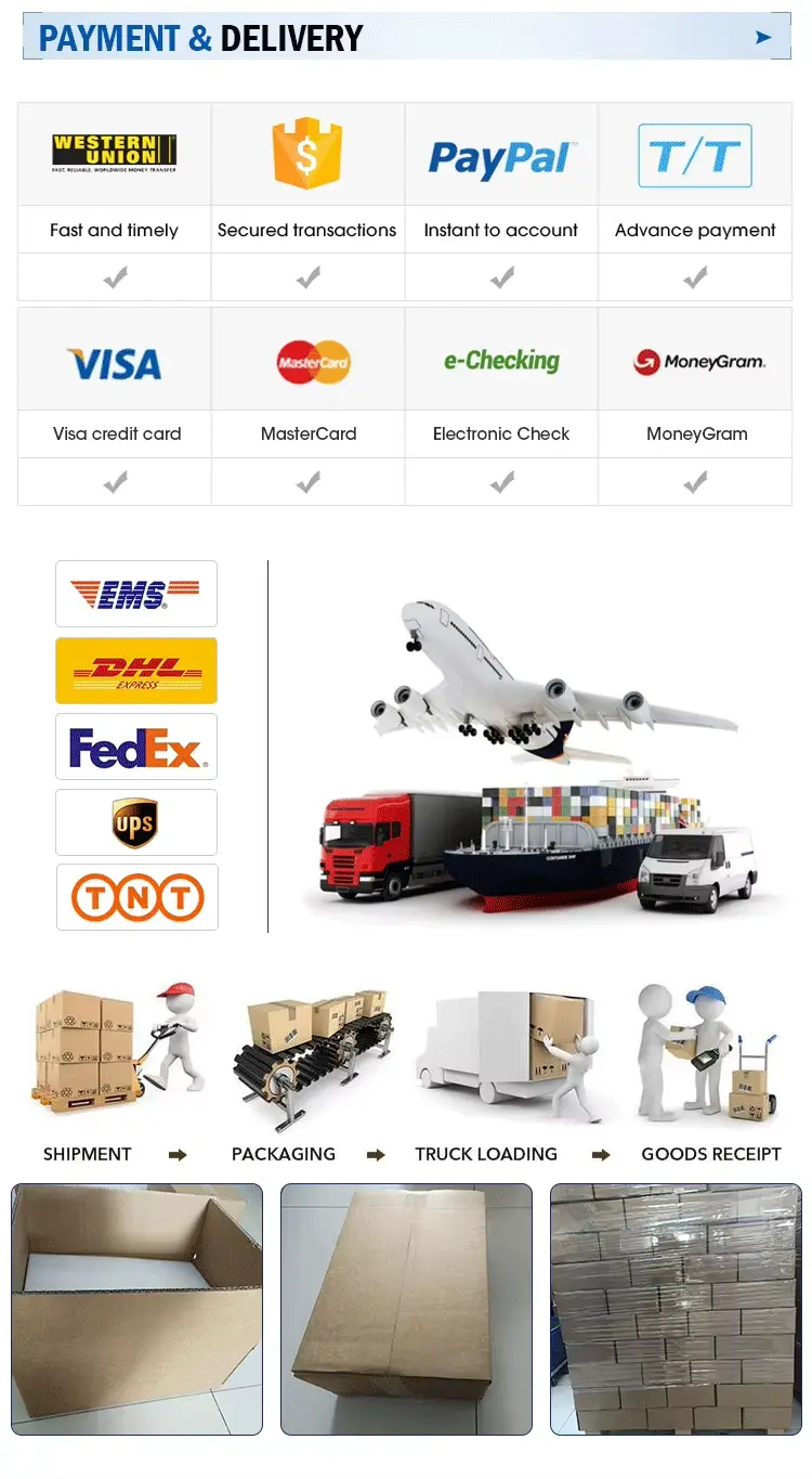 A4 : Les petites commandes sont expédiées par express (FEDEX, DHL, EMS, TNT). Les grosses commandes sont expédiées par voie maritime ou aérienne. Prix FOB disponible. Vous pouvez utiliser votre transitaire ou le nôtre.