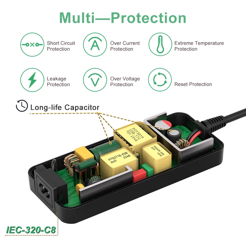 * Prises universelles : US/EU/AU/UK/JP et plus