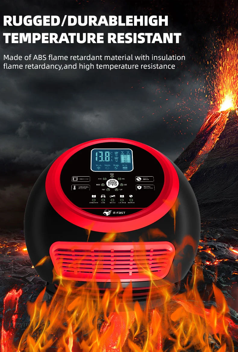 (3) Mode hiver et été : pendant le processus de charge, détectez la température ambiante, ajustement rapide de l'état de charge du produit pour garantir la durée de vie de la batterie et la sécurité de charge, mode hiver : flocons de neige sur écran LCD, mode été : soleil sur écran LCD.